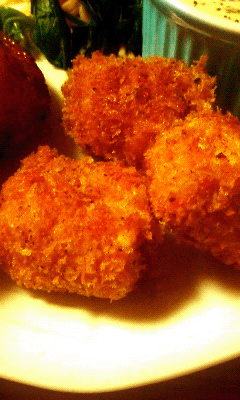 ささみにカマンベーるをはさみ、ころもを細かめにつけてあげました。